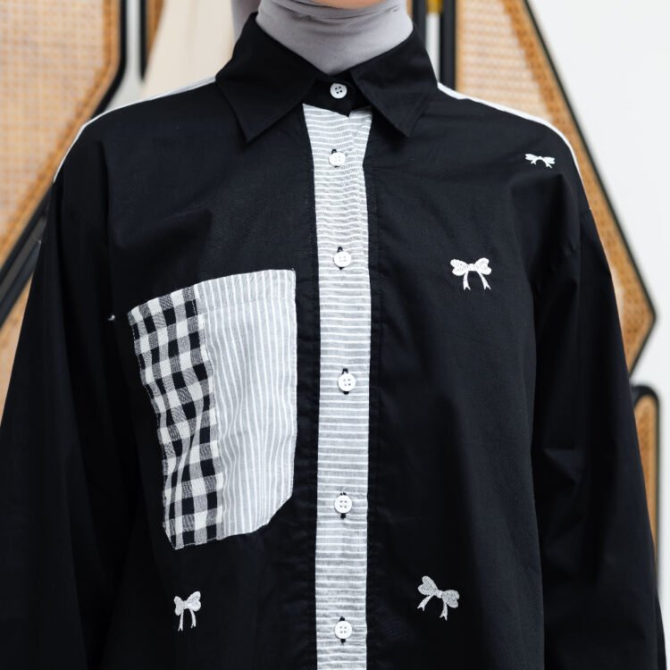 Blouse dengan bahan 100% cotton japan quality dengan mix salur dibagian klep yang membuat blouse ini tampil minimalist elegant serta dengan motif bordir pita yang cantik dengan kualitas bordir yang premium. bahan : KATUN EXPUTON 100% COTTON JAPAN Bordir : kualitas premium