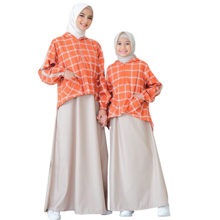 Gamis dengan outer hoodie bahan katun poplin