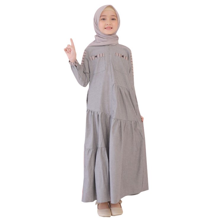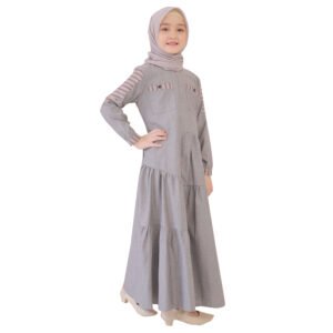 #Lunan GO Gamis Anak 1 Pcs Denim Mix Salur Premium LG 765dengan desain yang simpel dengan potongan asimetris cantik dibagian depan