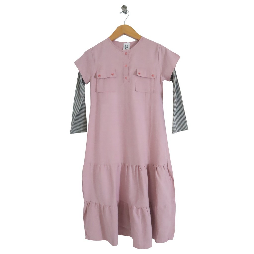 Gamis Kesan 2pcs model anak dengan gamis bahan rami dan kombinasi bahan kaos dibagian lengan dengan model kancong depan dan model gamis berkerut tingkat dibagian bawah.dengan desain yang simpel dan bahan yang nyaman digunakan untuk sehari-hari Dapat digunakan untuk couple ibu dan anak. Kode ibu (dewasa LG 746).