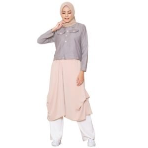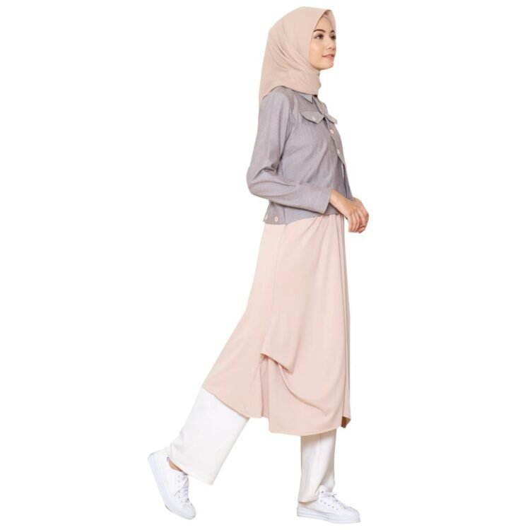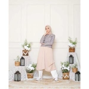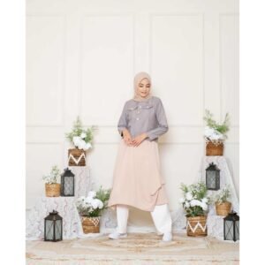 # Lunan GO Tunik Denim Mix Crepe LS 464 memiliki 3 warna Soft blue,Pink,Cream