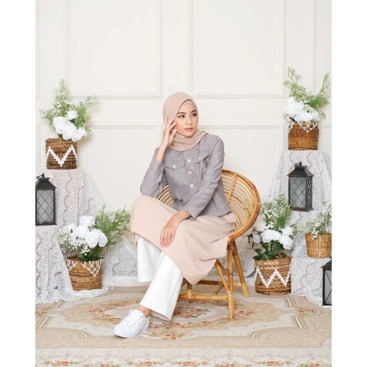 # Lunan GO Tunik Denim Mix Crepe LS 464 memiliki Model Tunik yang Cantik, Simple dan Fashionable