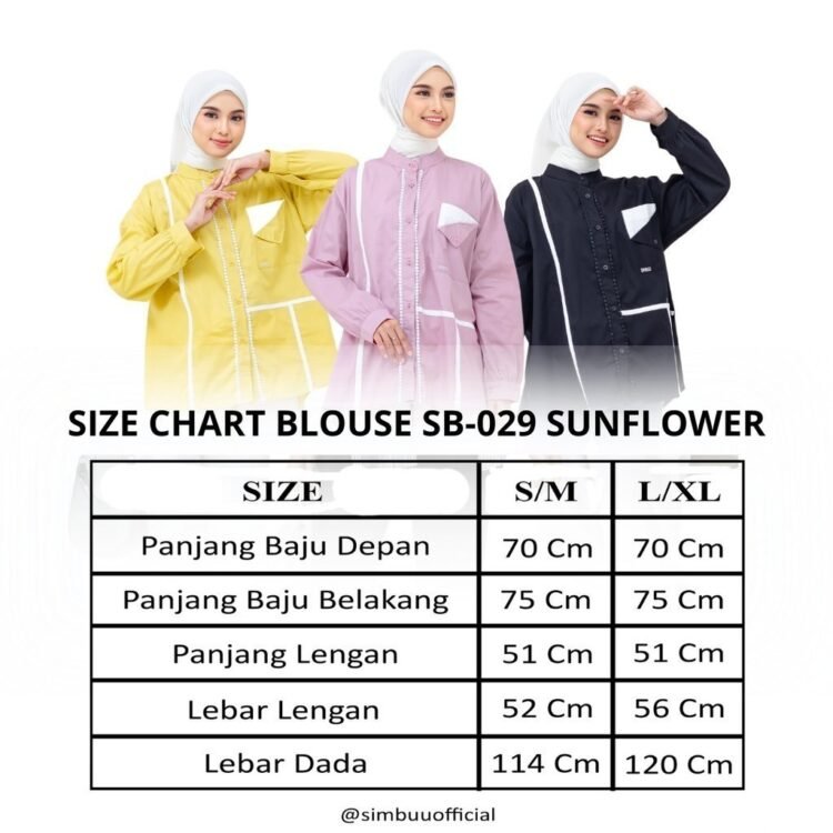 Tampil anggun dan percaya diri setiap hari bersama Simbuu Official – SB029 Sunflower menghadirkan desain oversize dengan perpaduan warna yang manis. Menciptakan kesan elegan, clean, dan modern. Terbuat dari bahan katun exputon yang adem dan nyaman dipakai. Cocok untuk acara formal, casual, hingga semi-formal.