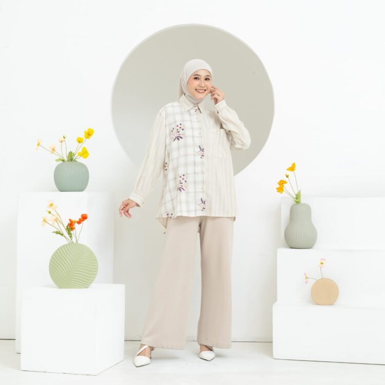 Blouse ini dirancang untuk wanita aktif yang ingin tampil sopan dan tetap stylish. Dengan di desain oversize, blouse ini memberi keleluasaan bergerak sekaligus tampilan rapi. Detail bordir bunga manis menambah sentuhan elegan yang menawan.